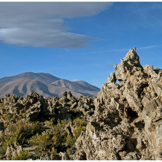 After crossing a railroad track, which dates back to the time when Bolivia still had access to the Pacific Ocean and was used to transport ore to the harbor trading posts, we came to a spot with strangely shaped rocks, of which the most famous is the Arbol de Piedra ("stone tree"). It stands 7m high and gives you an idea of how the desert wind carrying sand and salt slowly erodes everything in its path. We got an idea of its power a few minutes later, when a sand storm blew fine dust and sand in our faces. I bet after a few hours in that wind we might have looked not unlike that stone tree.